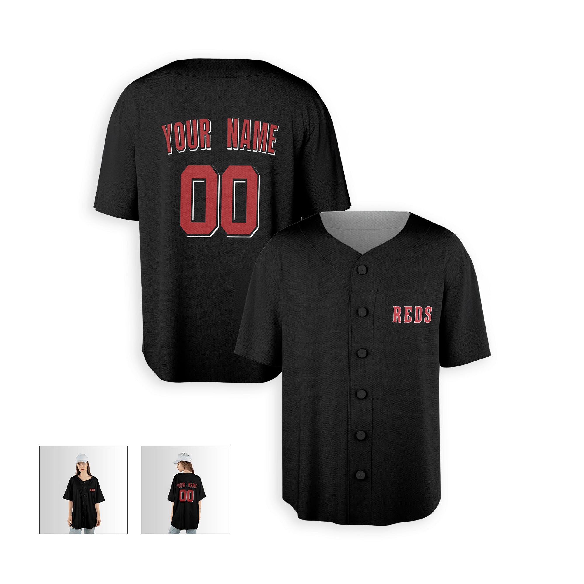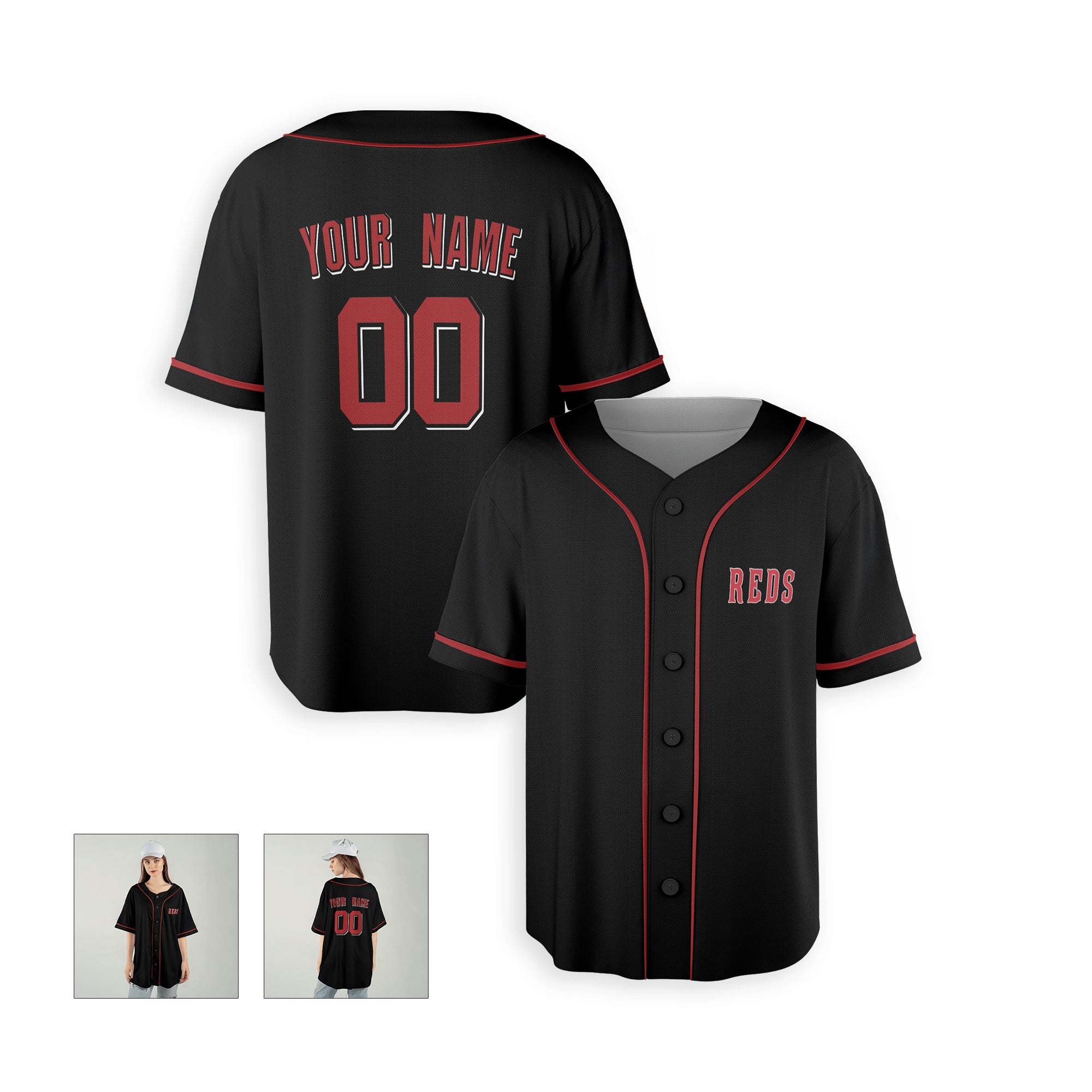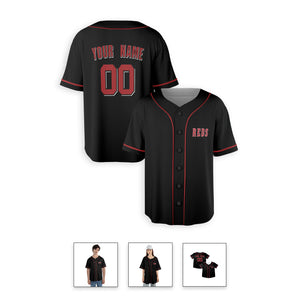 Personalized Cincinnati Reds Inspired Style Alternate Jersey Player Name, Team Name & Number for Men, Women, Youth, Kids - Piping and No Piping Options | Sizes S to 5XL | Black
