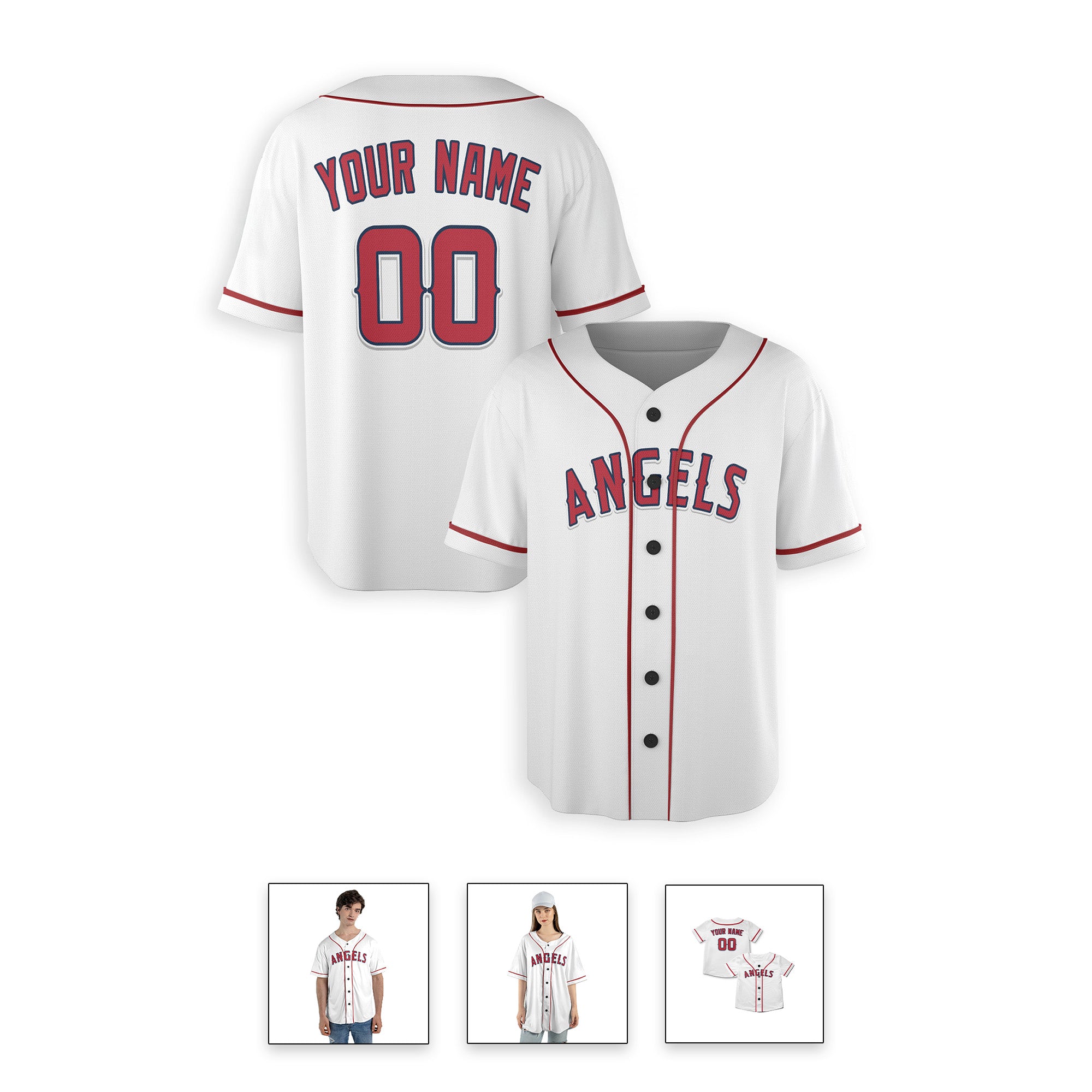 Personalized Los Angeles Style Alternate Jersey - White Red with Team Name & Number for Men, Women, Youth, Kids - Piping / No Piping Options | Sizes S to 5XL